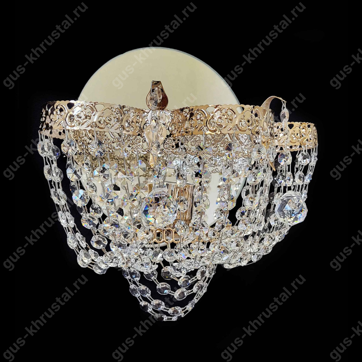 Настенная Бра Лира № 1 - настоящее украшение для стен в интерьере. Размеры данной модели d- 300 мм, h- 300 мм, количество ламп 1 шт. Производство Гусь-Хрустальный. Светильник настенный с подвесами из хрусталя, выполнен в классическом стиле. Подвески для хрустальных бра изготовлены из прозрачного хрусталя, но по вашему желанию можем заменить на цветной хрусталь (Ознакомиться с выбором подвесок и цвета можете на сайте в разделе «Подвески»). Так же вы можете выбрать варианты цвета фурнитуры  подходящие для вашего дизайна и интерьера   золото/серебро/бронза/латунь.  Площадь освещения: 2-4 кв/м. Это возможность создать уютную, приятную во всех отношениях атмосферу, которая отлично подходит для гостиной, спальни, прихожей, ванной комнаты и других помещений в доме. В интерьере спальни светильники служат источником дополнительного света.